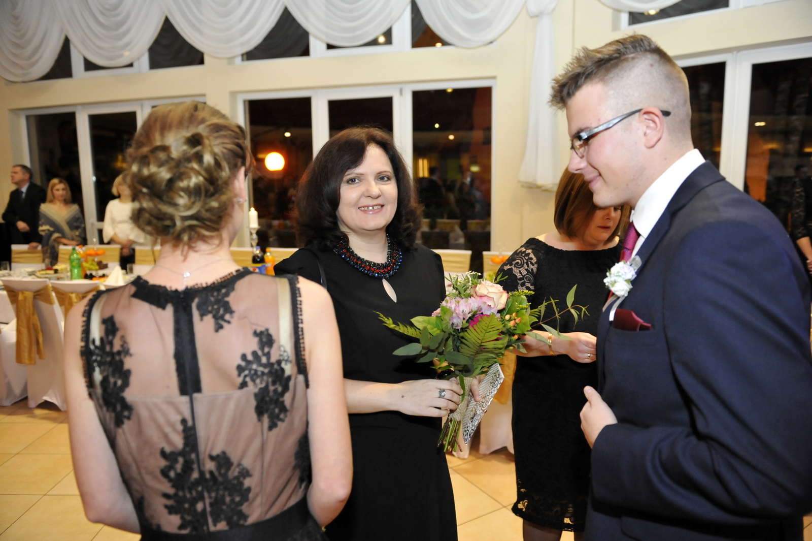 Impreza rozpoczęła się tradycyjnie uroczystym polonezem, po którym powitano zaproszonych gości. Była to także okazja, aby maturzyści podziękowali dyrekcji i nauczycielom za kilka lat współpracy. Następnie wszyscy zasiedli do stołu. Członkowie szkolnego teatru Bene Nati zaprezentowali walca, a następnie wszyscy ruszyli na parkiet.