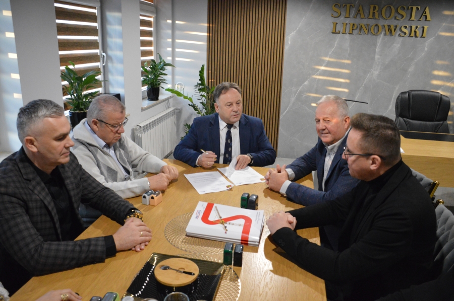 Dziś (28.11.2025r.) w siedzibie Starostwa Powiatowego w Lipnie podpisano umowę na realizację wyczekiwanej inwestycji – budowy Powiatowego Centrum Rekreacji i Sportu w Lipnie. Wykonawcą została firma WIKSBUD Sp. z o.o. z Lipna, której oferta, opiewająca na 12 232 942,00 zł brutto, okazała się najkorzystniejsza spośród 12 złożonych propozycji. Umowę podpisali Starosta Lipnowski Krzysztof Baranowski, Wicestarosta Mariusz Linkowski, Skarbnik Powiatu Monika Lewandowska oraz Prezes WIKSBUD-u Witold Sieradzki. Jak zapowiedziano, prace budowlane rozpoczną się niezwłocznie po poprawie warunków atmosferycznych.
